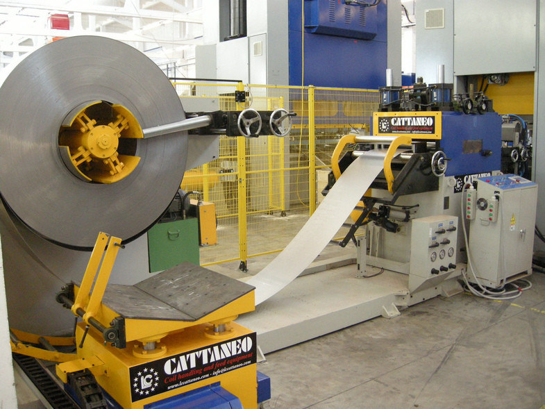 The decoiler can handle the coil and be capable of feeding the coil into the coil Line, and also rewinding partially consumed coils, so they can be re-strapped whilst still on the mandrel, before returning to Coil Storage Facility for use at a later date.